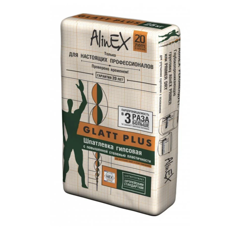 - Код товара: Шпаклёвка гипсовая Alinex Glatt Plus 25 кг